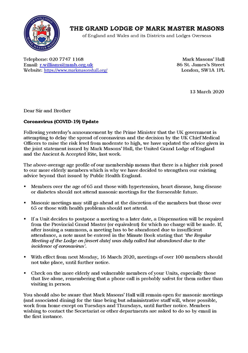 Coronavirus Update 13th March 2020