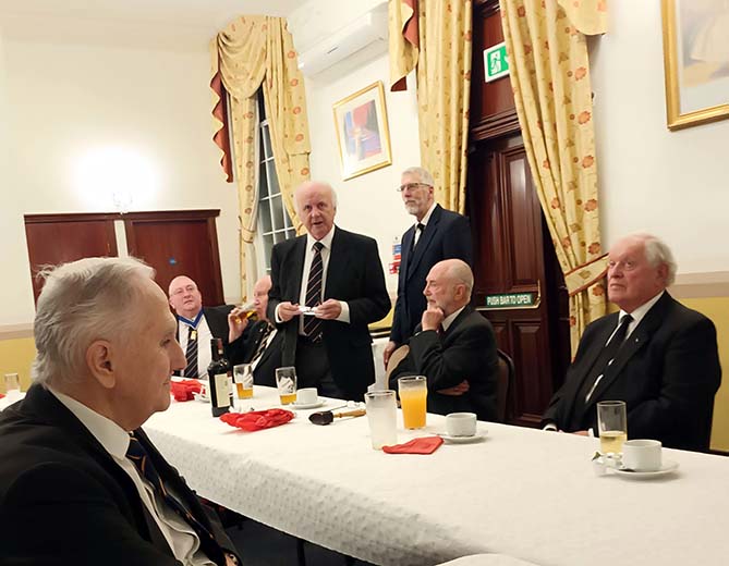 | The Supreme Ruler then offered the gavel of the lodge to R.Wy Bro Terence Vincent Maybury Provincial Grand Supreme Ruler as was his right; though as expected this was politely refused with the comment that the Provincial Grand Supreme Ruler “didn’t want to take the expected plaudits away from Wy Bro Knight!” |