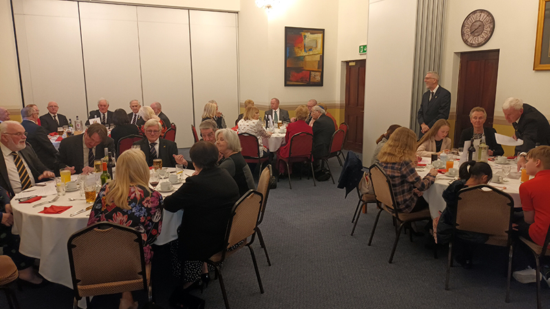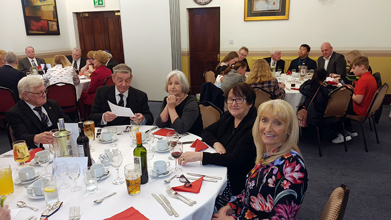 | Following the meal everybody took part in a light-hearted table quiz prepared by the conclaves' secretary's wife Yvonne. It was no surprise when the winning table with a score of 49/50 turned out to be the one who revealed that they had a guest on their table who had won the Warrington Quiz League in consecutive years! How fortunate! | ||