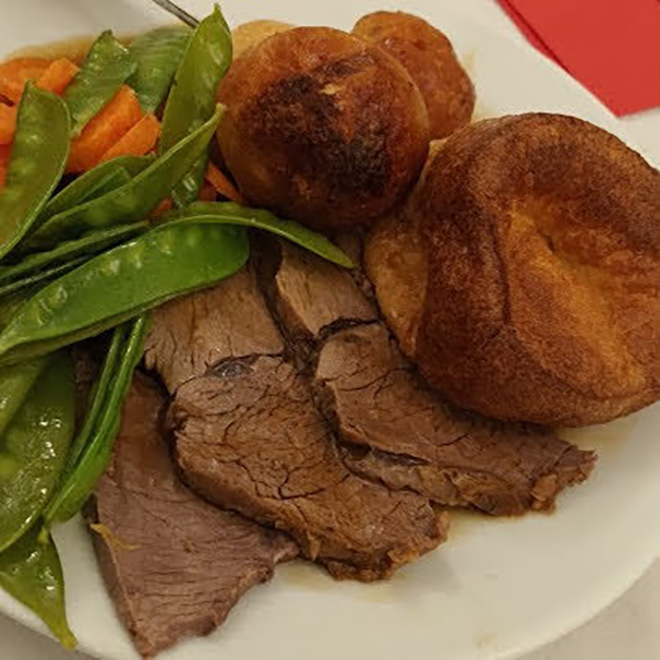 | 1st Course – Goats Cheese Tartlet with dressing 2nd Course – Roast Beef & Yorkshire Pudding served with seasonal vegetables |