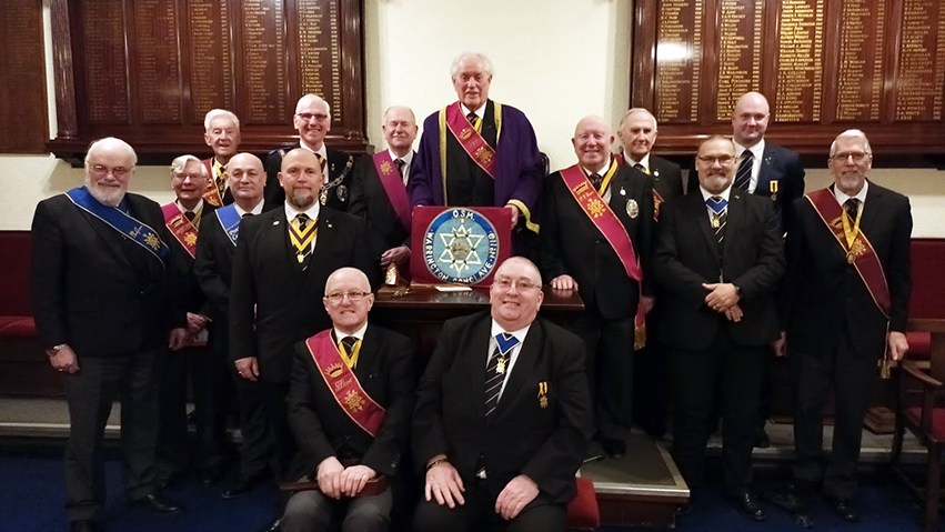 | Wikipedia describes the word “Ritual” as a sequence of activities involving gestures, words, actions, or objects, performed according to a set sequence; and that is exactly how Warrington Conclave No.119 duly raised its own Bro Paul Smith to the degree of a Prince with a superb ceremony performed on Tuesday 7th February. | |