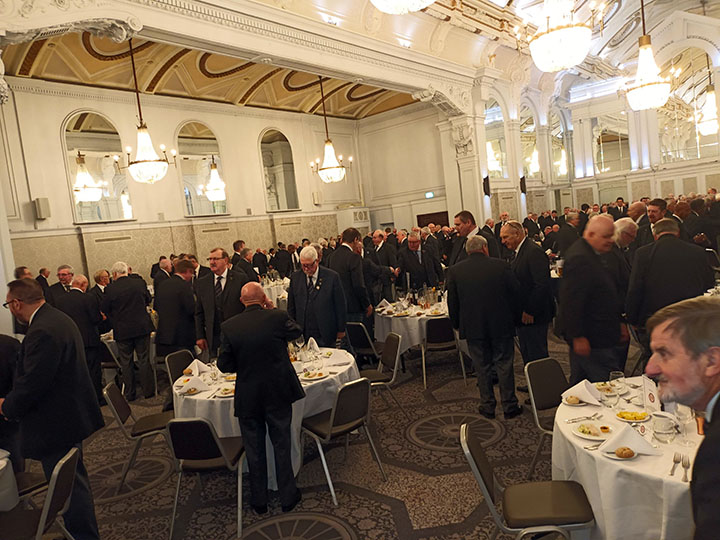 Suitably “fed & watered” it was time to enter Grand Conclave where the air was thick with tradition, reverence and an unspoken solemnity as brethren prepared themselves for the investiture ceremony.